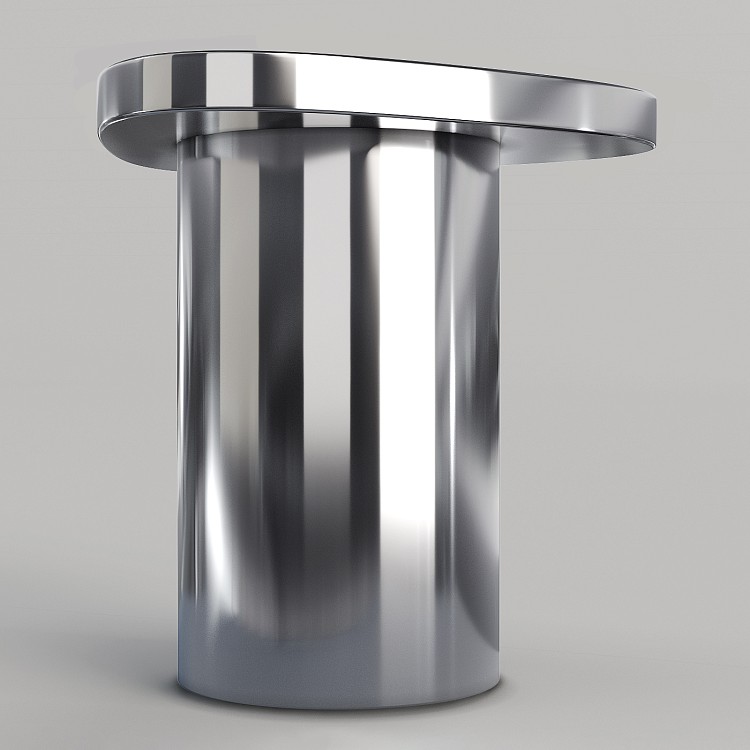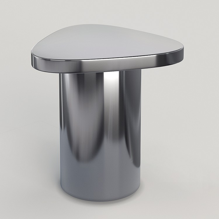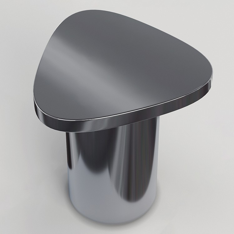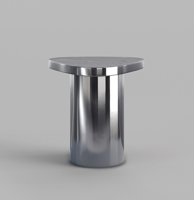 Миниатюрный кофейный столик от Яны Быковой с сильным визуальным эффектом. Благодаря полированной поверхности он отражает окружающее пространство и одновременно сливается с ним.