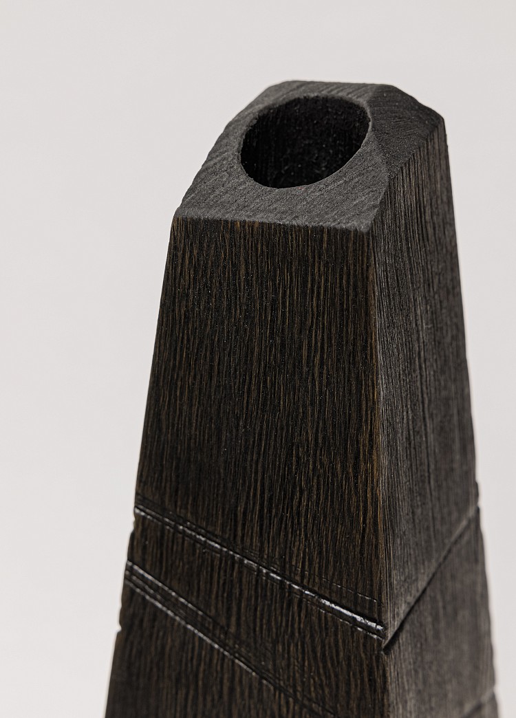 Вазы Falcon авторства Ростислава Рубцова выпускаются в нескольких видах: с гладким массивом дерева, брашировкой по вертикали или горизонтали - тем самым достигается различный визуальный и тактильный эффект. Сложные, изогнутые линии, всегда разный рисунок древесины и мастерская, фирменная работа с материалом делают эти предметы заметными героями пространства.