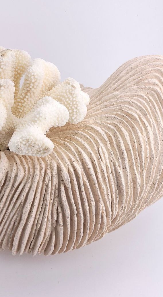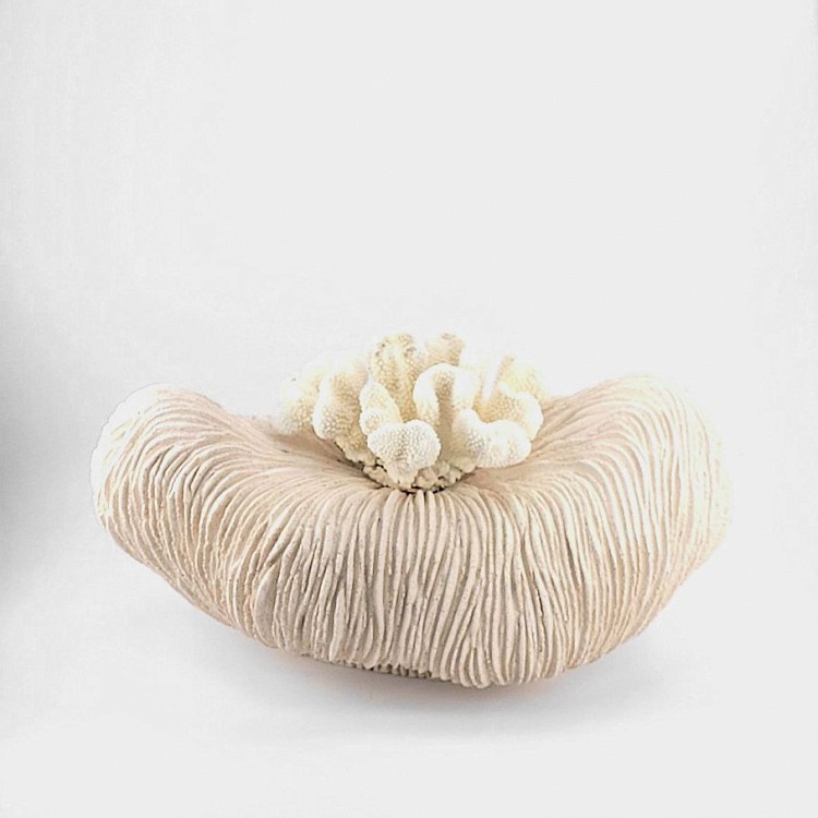 Одна из фантастических ваз серии "Цветы океана " авторства Анны Антадзе-Мамаладзе. Это серия выдуманной флоры и фауны. Она про эмоции, которые мы испытываем, когда наконец-то входим в море, океан. Солнце бьёт в глаза, взрыв мимолетного счастья... Через прищуренные глаза мы видим абрис морских волн, белый свет солнца и брызги от всплесков волн.