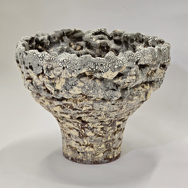 Ваза-чаша с расширяющимся раструбом и природной фактурой. Кораллы, меловые отложения, цвет травертина – здесь все про Средиземноморье.