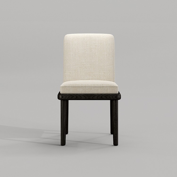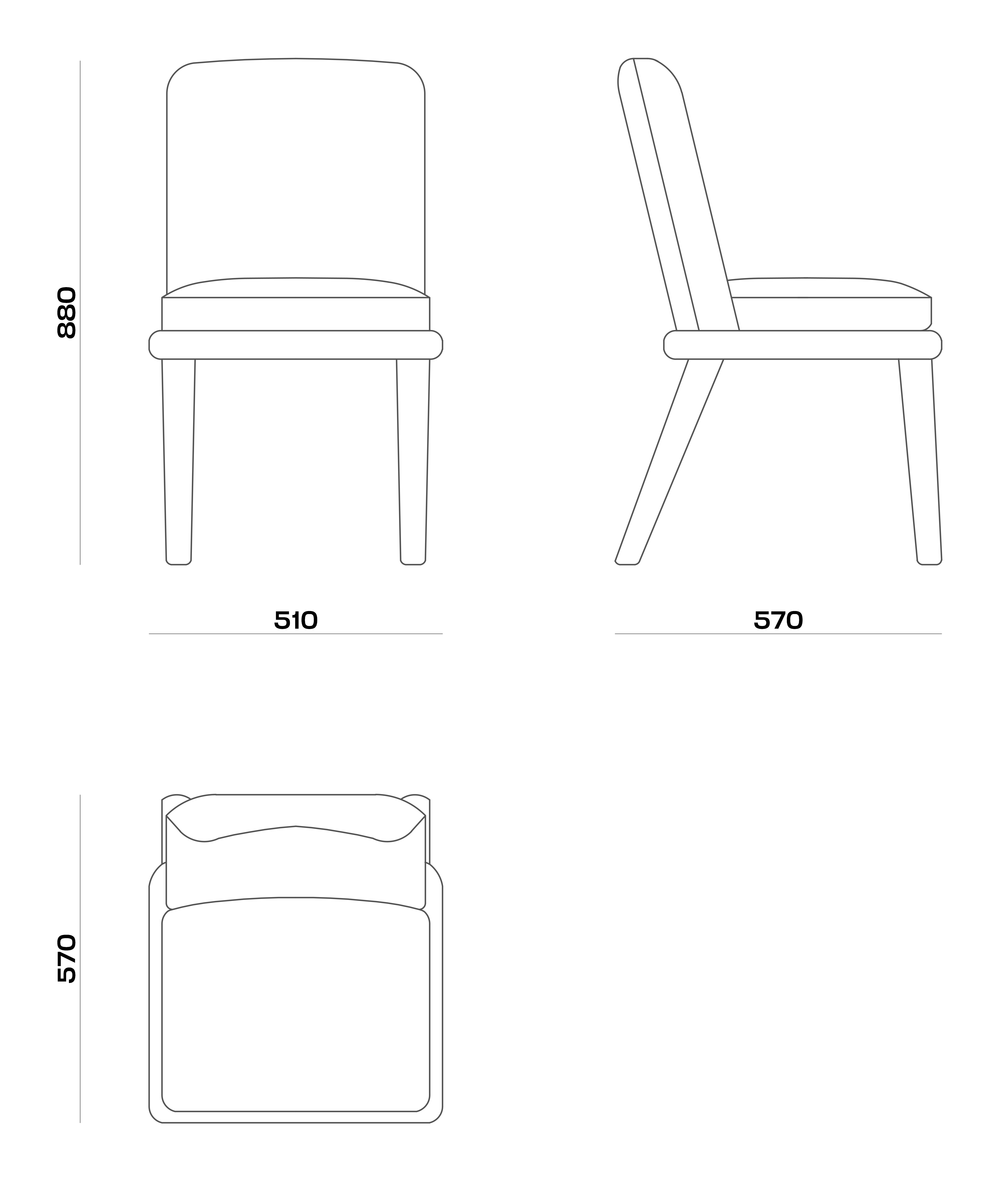 Стул словно составлен из двух частей: основательная и широкая рама и ножки в темном дубе контрастирует с более легким и светлым дуэтом сиденья и спинки. Кажется, верх просто приставили к нижней раме, но это оптическая иллюзия. Это идеальный предмет, в котором нет ничего лишнего, и его можно включать в любую обстановку.