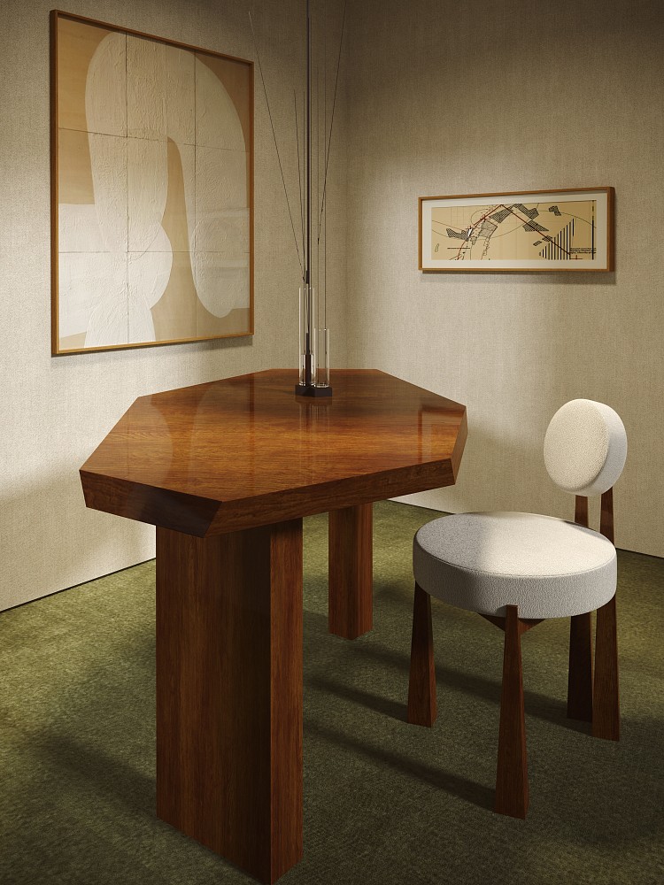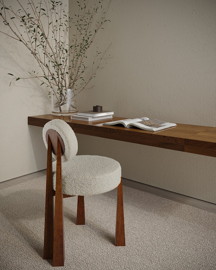 Дизайнер Ольга Силантьева придумала стул, образ которого навеян мебелью русского архитектора периода модерна Ивана Фомина. В основе идеи - отсыл к традиционному крестьянскому быту дореволюционной России, аутентичность используемых материалов, простота и брутальность форм. Тем не менее, у нашего Masai chair жесткие контуры трапециевидных ножек из дуба или вяза, покрытых маслом для подчеркивания естественного рисунка древесины, деликатно смягчены плавными линиями сиденья и спинки с обивкой из приятного на ощупь текстиля.