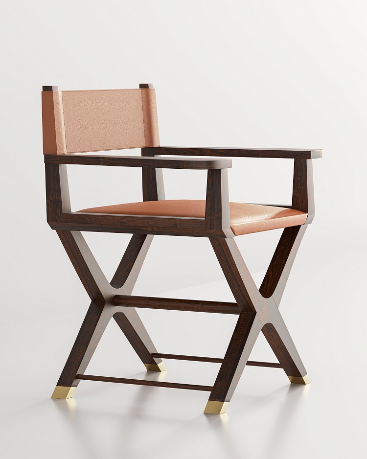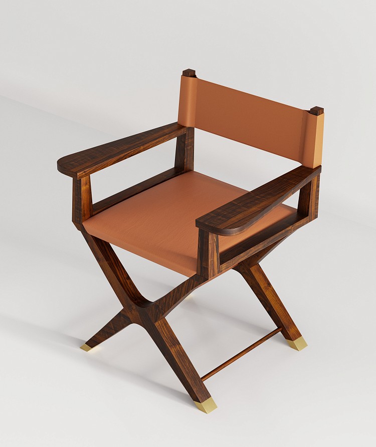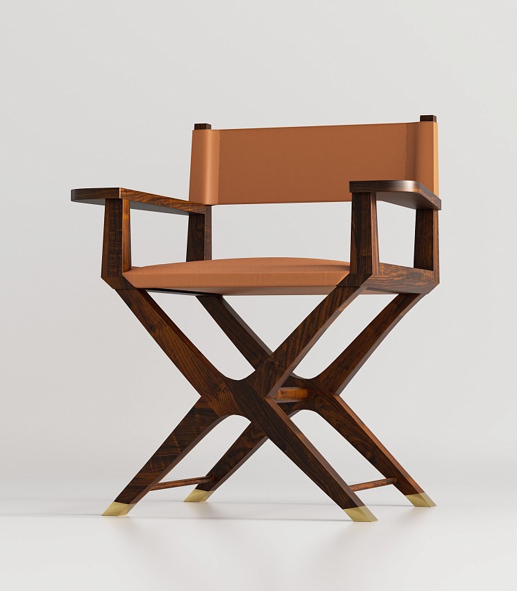 Наша трактовка модели, известной как “кресло режисера”. Но если традиционное режисерское кресло предназначено для съемочной площадки и педставляет собой металлическую складную конструкцию с холщовыми спинкой и сиденьем, то наше кресло создано для респектабельных интерьеров и радует глаз сочетанием дерева и кожи.