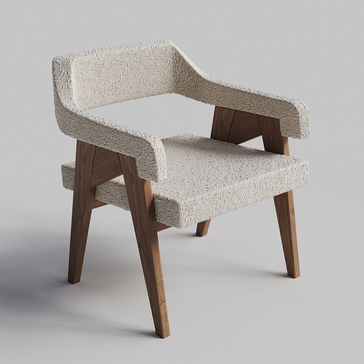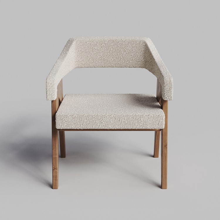 На редкость комфортный стул-кресло со сплошной линией подлокотников, переходящей в спинку и декоративной комбинацией деревянных деталей, образующих ножки. Модель, которая притягивает взгляды.