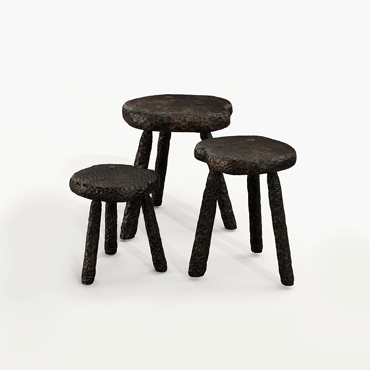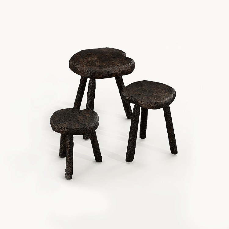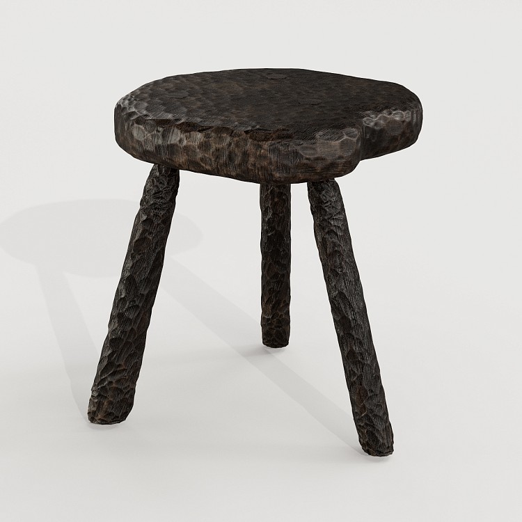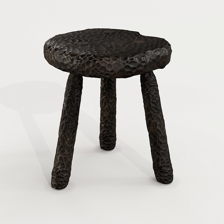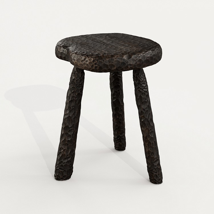Невероятно тактильный и фактурный табурет. Кажется, что следы на дереве оставила сама природа, а на самом деле предмет создан в фирменной, крафтовой технике от Ростислава Рубцова.
