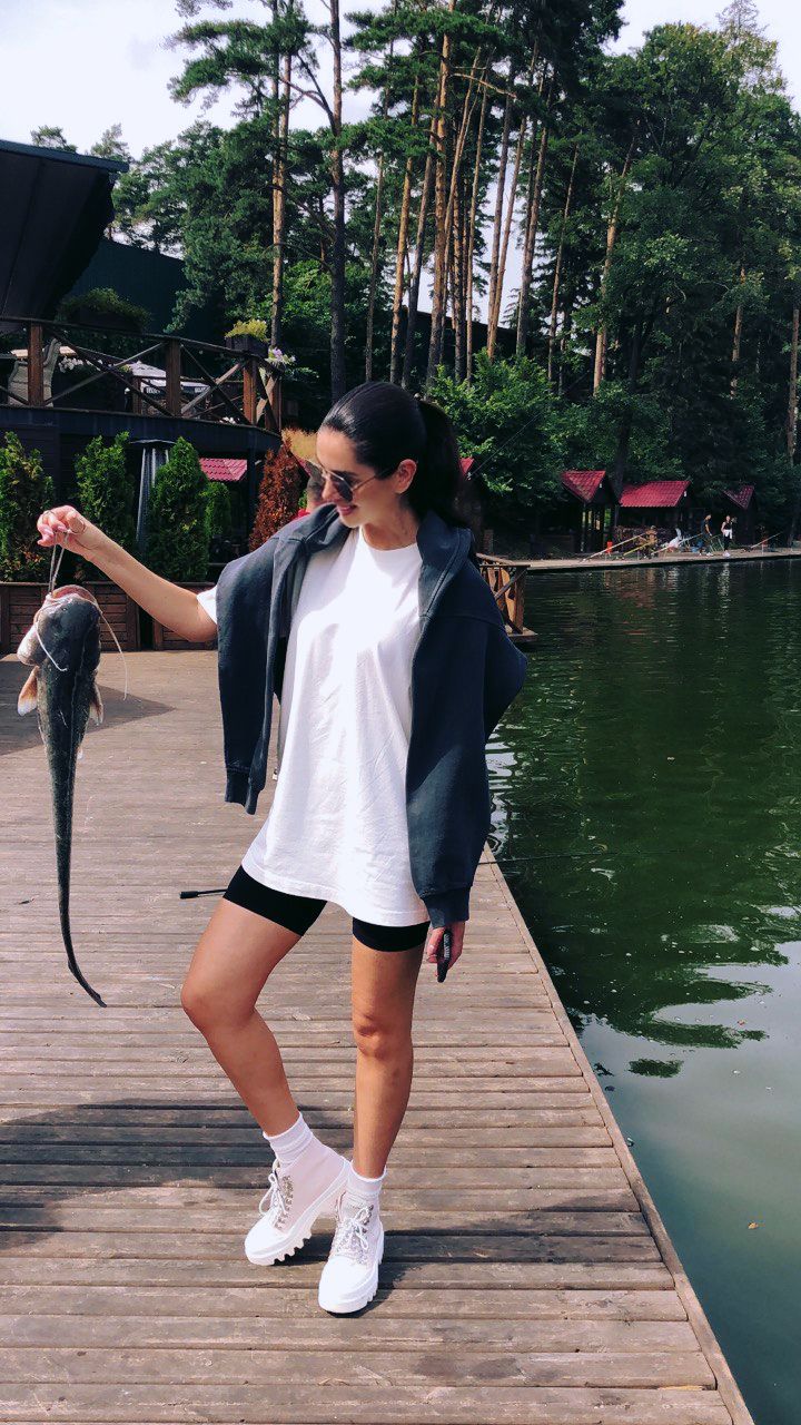 17.20. Несмотря на плотный рабочий график, нужно улучить час, чтобы основательно подготовиться к дню рождения сына - закупить необходимую атрибутику, воздушные шарики, все для пикника. Праздновать собираются с друзьями на рыбалке: недалеко от дома есть чудесный fish point - в окружении красивой природы, с правильными инструкторами и хорошим сервисом. Мы просили сделать несколько фотографий для статьи, но, оказывается, Яна и сама знатный рыболов! Она настолько была увлечена процессом, что до полноценной съемки дело не дошло))