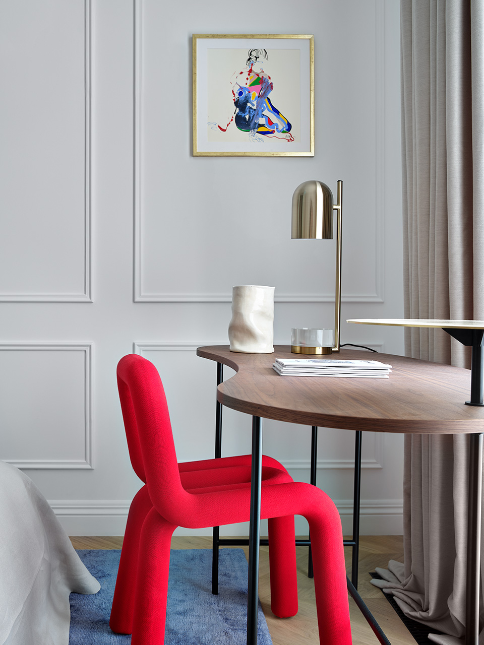 Яркие акценты и дизайнерские предметы смотрятся в таком интерьере абсолютно естественно. Фото: Сергей Ананьев, стиль: Даша Соболева.