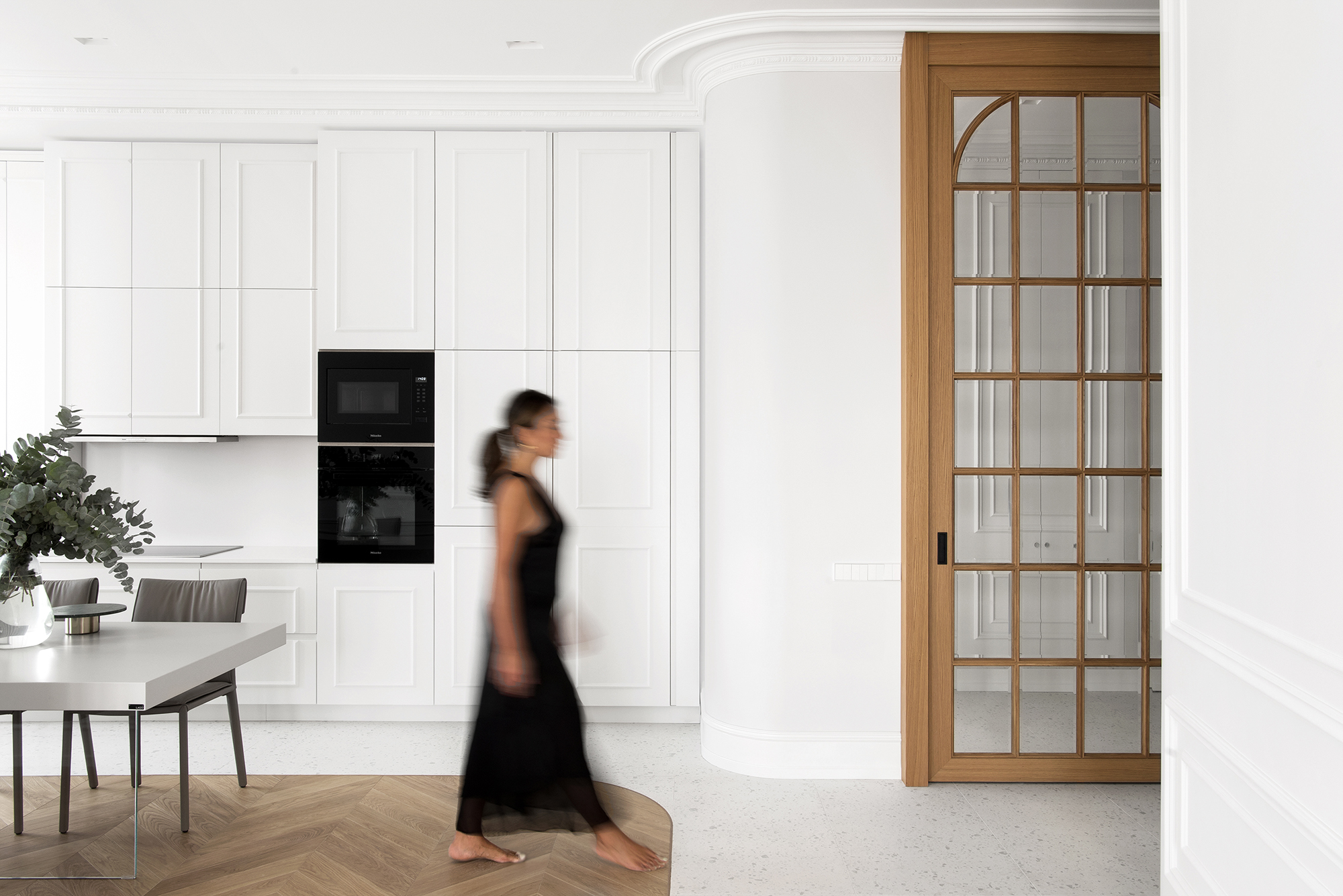 Французский интерьер предполагает очень точную подборку оттенков и тонировок: идеально, если все столярные работы проводит одна компания, -- именно так поступили дизайнеры Мария Зуева и Мария Касаткина.
