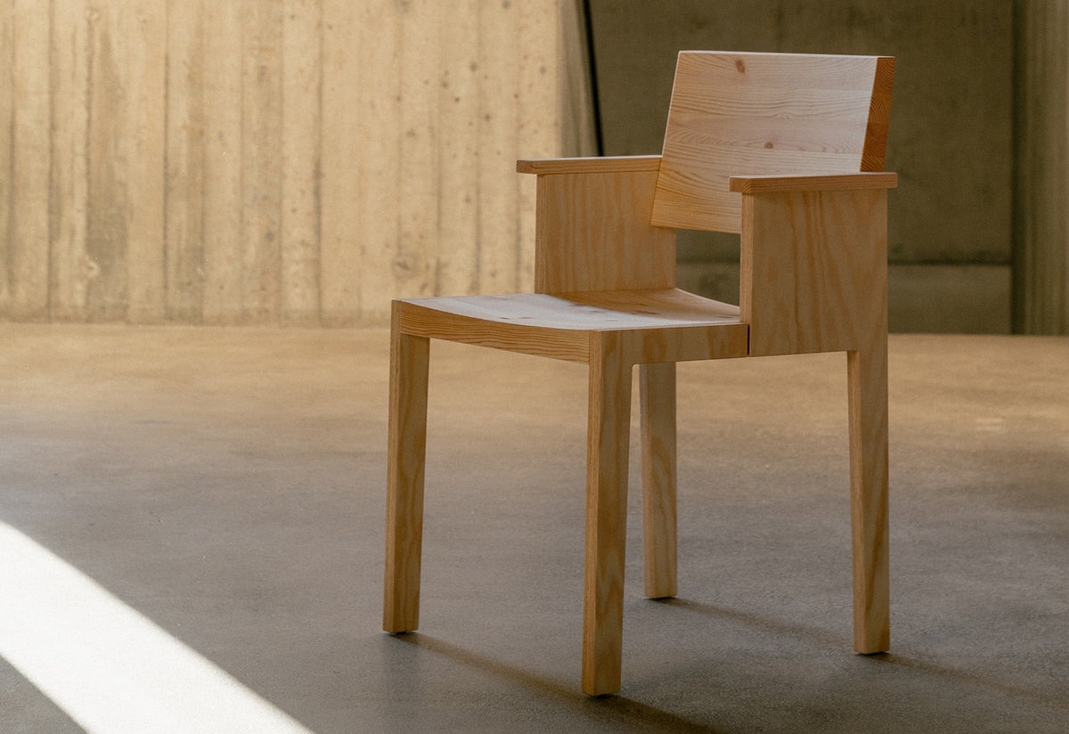 Деревянный стул для Vaarnii, представлен на выставке в Стокгольме.