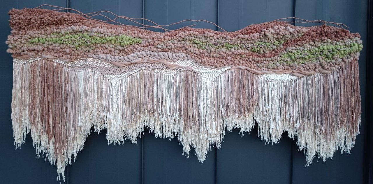 Гобелен “Зеленые сны”, Анна Гарди, 2022 г. Ручное объемное ткачество на раме. Хлопковый шнур, трехпрядная веревка, шпагат, арт-пряжа, шерсть.