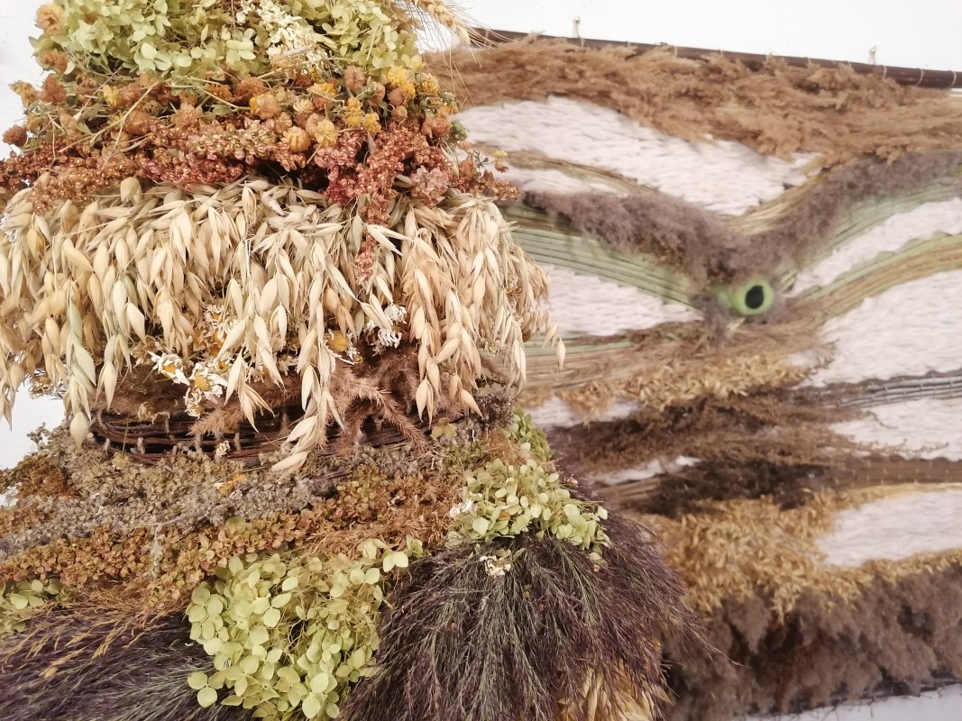 Вера Занегина ткет “живые” гобелены из полевых трав, цветов и скрученных осенних листьев.
