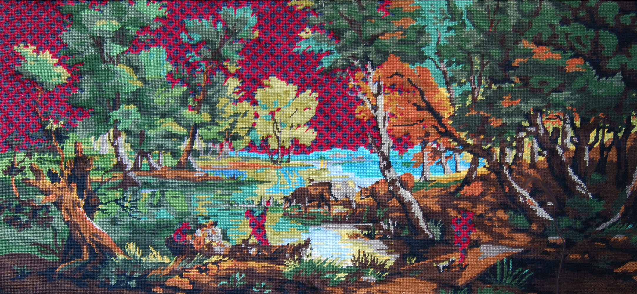 Мэтт Смит создал целую серию гобеленов “Trouble with History”: привычные пасторальные сюжеты выполнены в традиционной технике, но с включением текстильных лоскутов с ярким современным геометрическим орнаментом. Несколько его работ на ярмарке Collect сразу же купила галерея Cynthia Corbett, тканые “картины” Смита пополнили также коллекцию музея Виктории и Альберта и появились в экспозиции Национальных музеев Северной Ирландии.