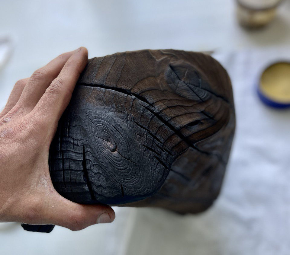 Yakisugi для меня уникальна. Эта техника позволяет мне получить нужный цвет и рельеф без применения какого-либо хитрого инструмента и лакокрасочных материалов. Огонь сам всё создаёт. Мне остаётся лишь выскрести уголь, выжечь трещины и покрыть изделие защитной пастой, которую, кстати, я делаю сам. Из пчелиного воска с собственной пасеки и льняного масла.