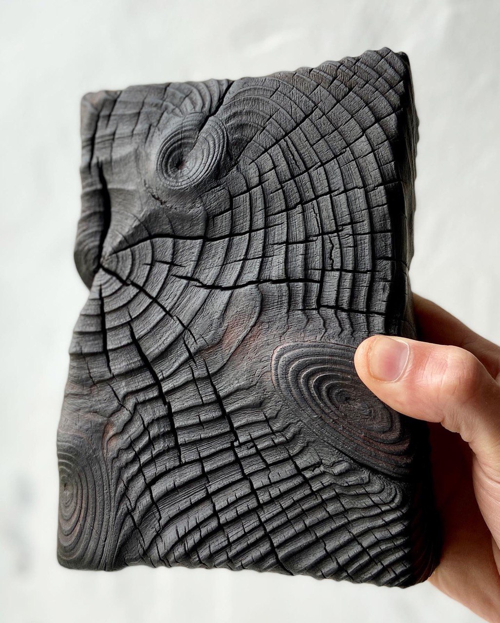 Затем я прочитал, что эта техника «консервирования» древесины зовётся yakisugi, изобретена в Японии, но активно используется по всему миру. Только в классической yakisugi уголь не счищается с поверхности, а наоборот - фиксируется. Я же счищал. Потому как мне интересна фактура, а за несчищенным углём её не видно.