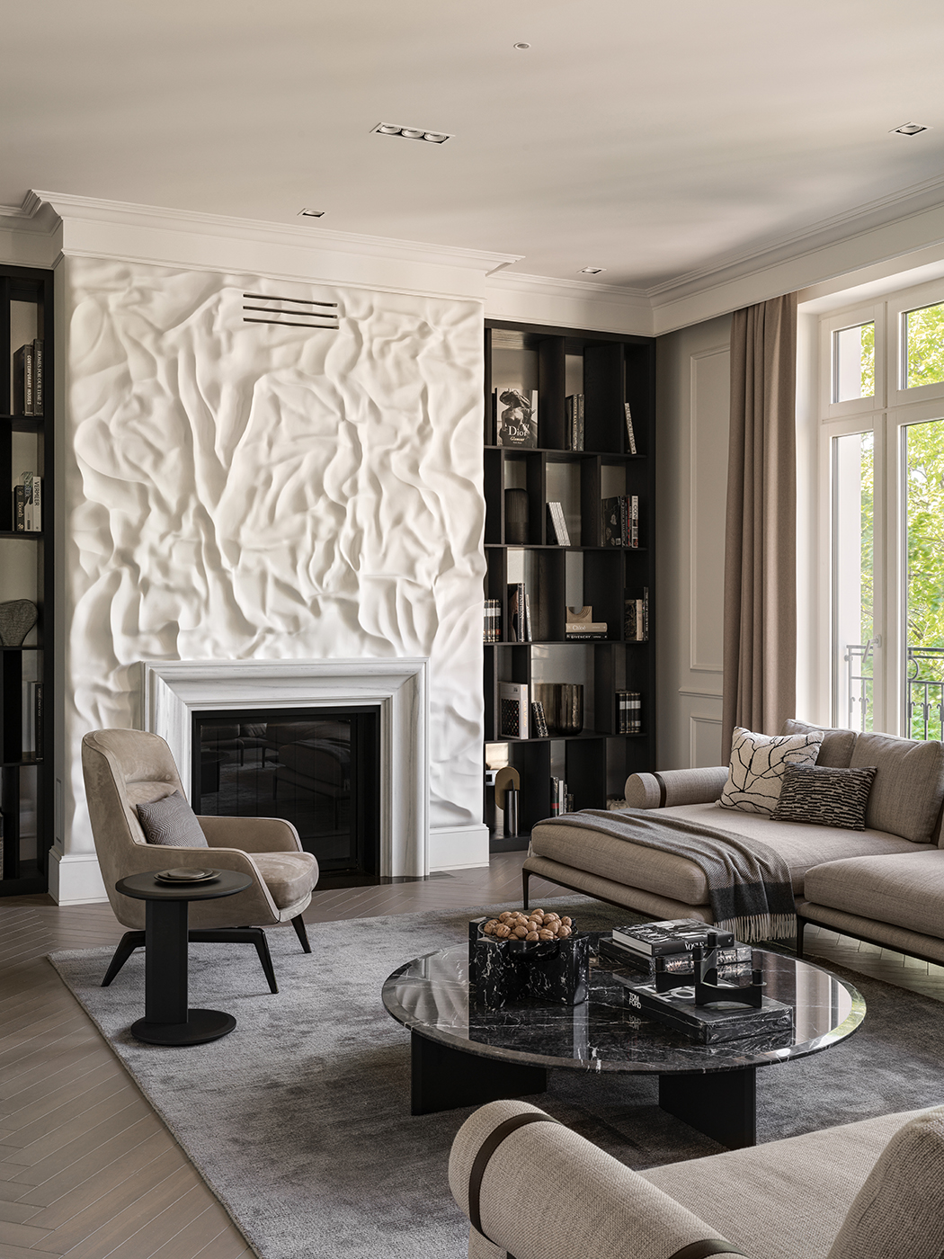 Возвращаясь к восприятию интерьера в целом, нельзя не вспомнить работы Дамьена Ланглуа-Меринна, который мастерски сочетает сложные и тактильно противоречащие фактуры. Как говорит дизайнер: “Благородные вневременные отделки вроде лакировок, бронзы и дерева, безусловно, помогают вдохнуть в пространство душу. Но мне нравится игра фактур, когда, к примеру, дорогой шелк сочетается с внешне грубым необработанным деревом или камнем, это уравновешивает интерьер. Успешный проект - тот, где каждая деталь рассматривается с одинаковой важностью, в котором архитектура, декор, мебель, искусство работают все вместе”.