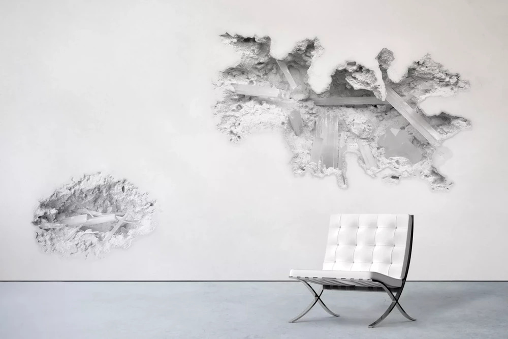 Обои Calico Wallpaper авторства художника и дизайнера Дэниела Аршама. На поверхность перенесен декоративный мотив, созданный Аршамом как крупномасштабная настенная роспись для выставки в галерее Perrotin Gallery в Нью-Йорке.