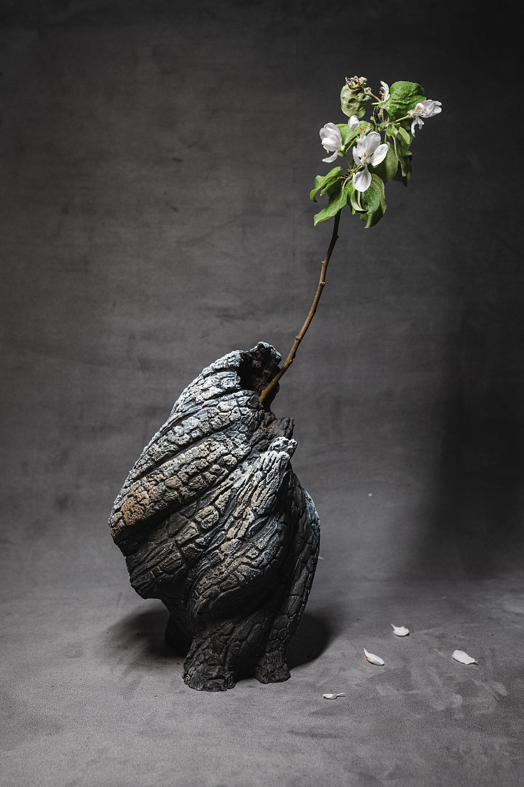 Но многие современные художники и дизайнеры пошли еще дальше - они стали “подменять” материал, тем самым вызывая к нему еще больший интерес. Особенно эффектно этот прием работает в керамике. Например, скульптура VOPREKI SCULPTURE (Modenature) Тимура Батырова. Кажется, что это фрагмент обугленного дерева. На самом деле - виртуозная работа с глиной.