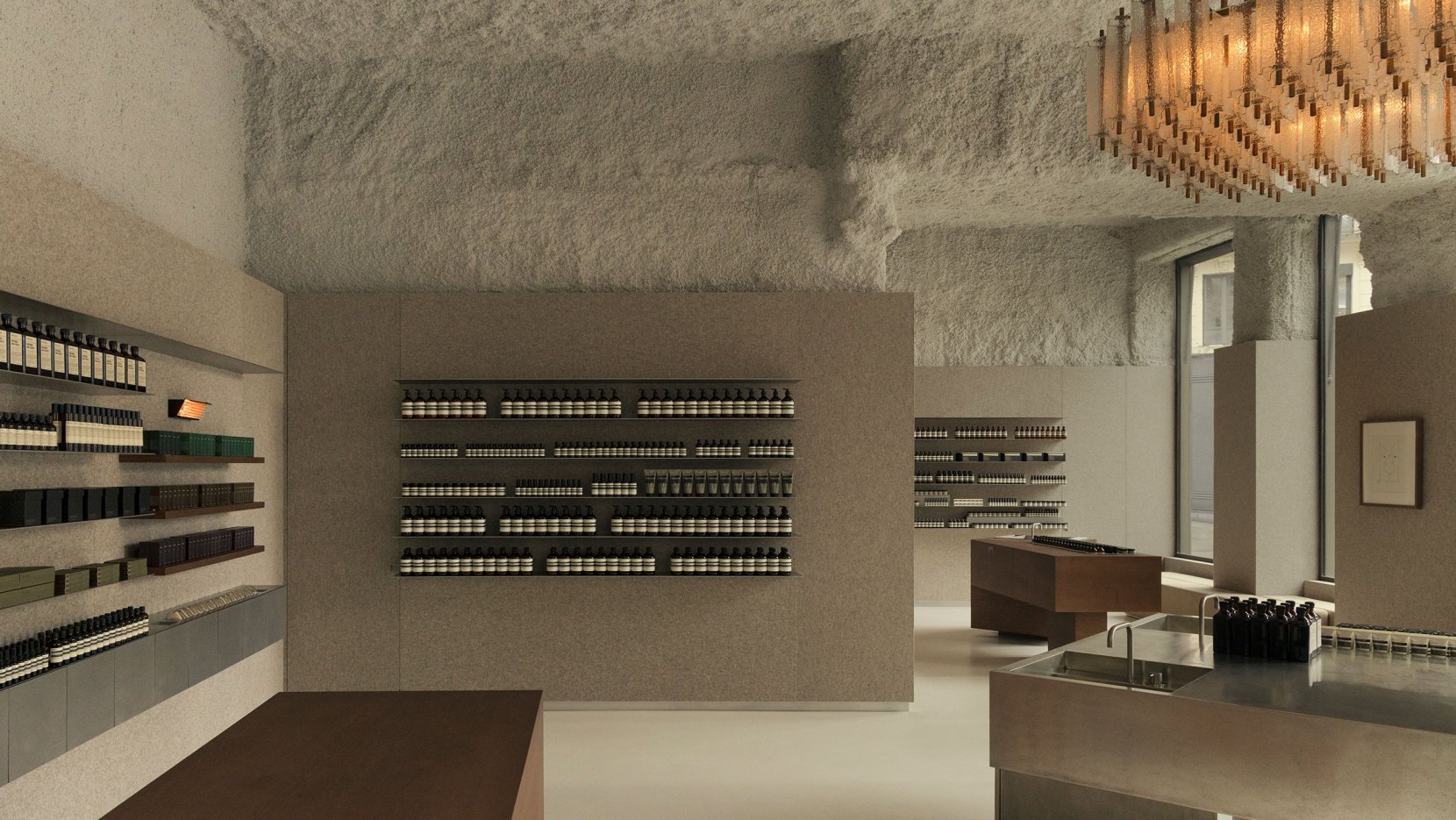 Магазин Aesop в Лионе по проекту бельгийской студии Nicolas Schuybroek Architects. Кортеновская сталь, шерстяной фетр и пожарная пена.