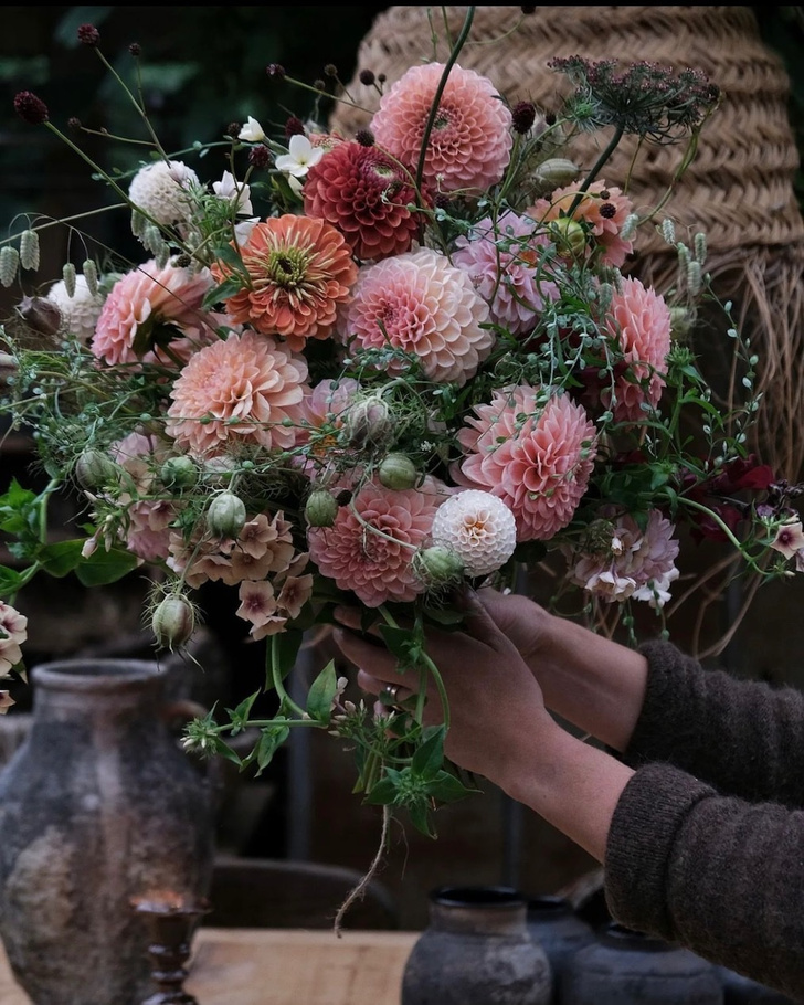 …и вдохновляющим букетом с георгинами от шведского флориста Линды Хэнсон.