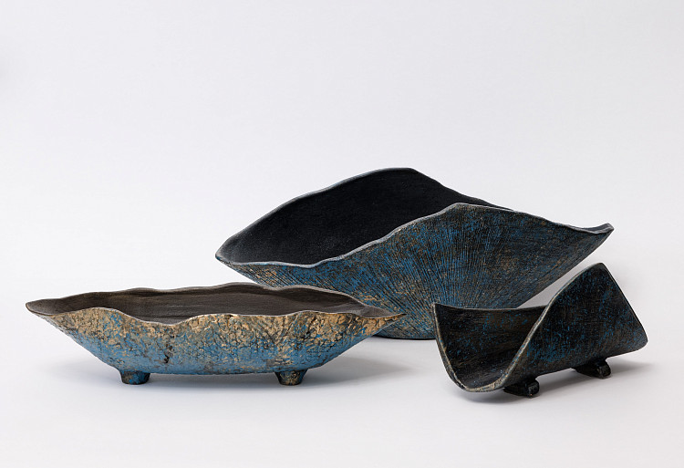 AZURE COLLECTION - серия керамики, придуманная Ириной Прибыловой и Михаилом Мироновым, пронизана японской эстетикой: сложные фактуры, матовые поверхности, приглушенные оттенки и своя, особенная философия. Объекты создаются на гончарном круге, затем обжигаются, вручную декорируются акриловыми меловыми красками и покрываются лаком. Весь декор рождается спонтанно, по наитию, поэтому в линейке нет ни одного похожего предмета.