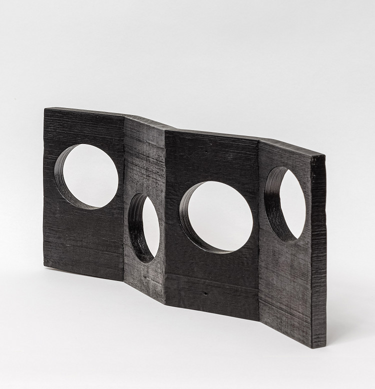 DUNE SCULPTURE - эти скульптуры, конечно же, надо видеть вживую. Прикасаться к шероховатой поверхности дерева. Менять угол обзора. Можно закрепить в них ветку. По словам автора, Ростислава Рубцова, формы предметов отдаленно напоминают очертания или детали известных модернистских зданий со всего мира. Материалы: клен, черная морилка, масло.