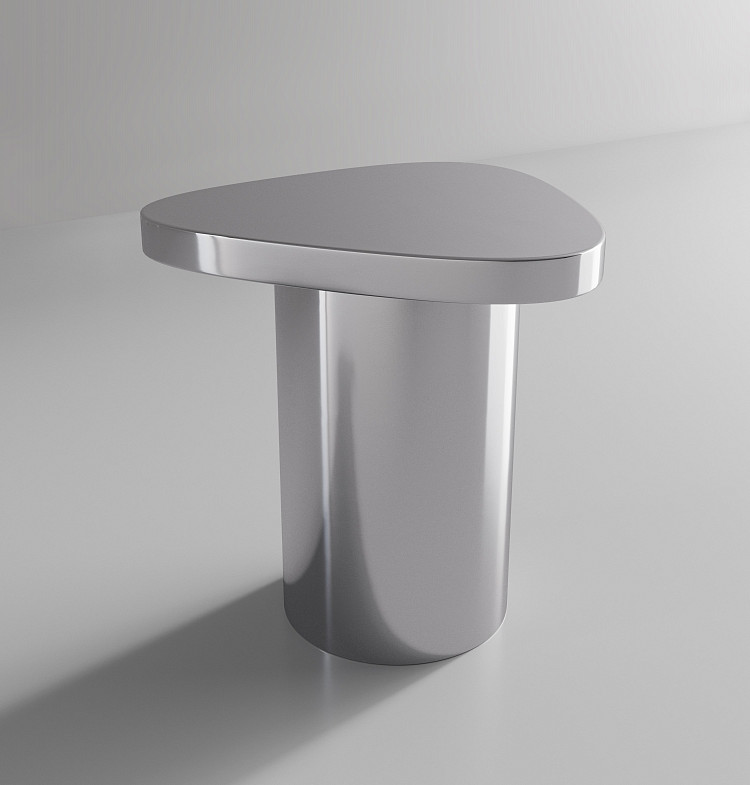KOX SIDE TABLE - миниатюрный кофейный столик от Яны Быковой с сильным визуальным эффектом. Благодаря полированной поверхности он отражает окружающее пространство и одновременно сливается с ним.