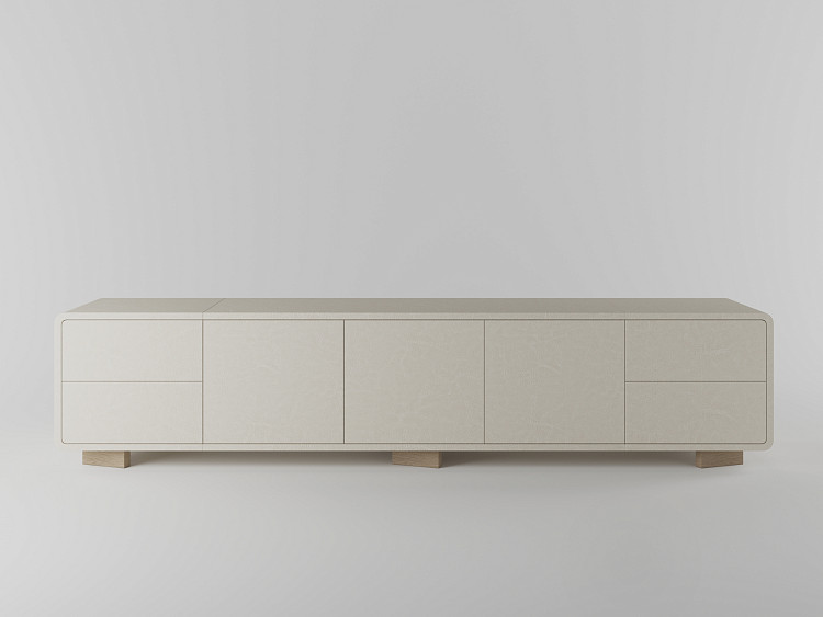 VISION TV CABINET - минималистичный комод, корпус которого обшит мягчайшей кожей. Особый шарм и игривость ему добавляют расположенные под углом аккуратные деревянные ножки. Внутренняя отделка - лак, с большой палитрой цветов на выбор.