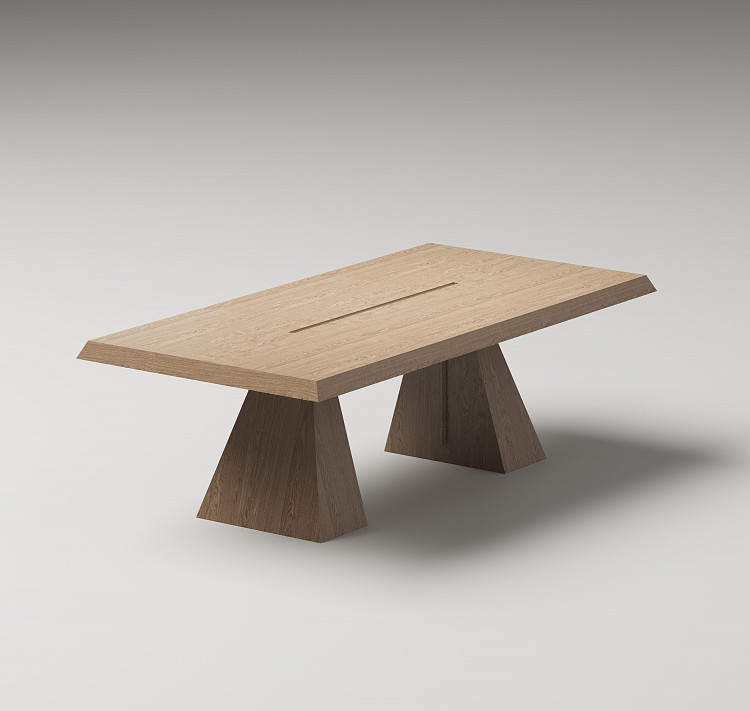 RAMIA DINING TABLE - большой обеденный стол, за которым приятно собраться всей семьей. Внушительные конусообразные ножки поддерживают лаконичную столешницу со слегка скошенными бортиками. Архитектурная графика и фактура натурального дерева настолько хороши, что это тот редкий случай, когда скатерть лучше не подбирать. Дизайн Виктории Климань.