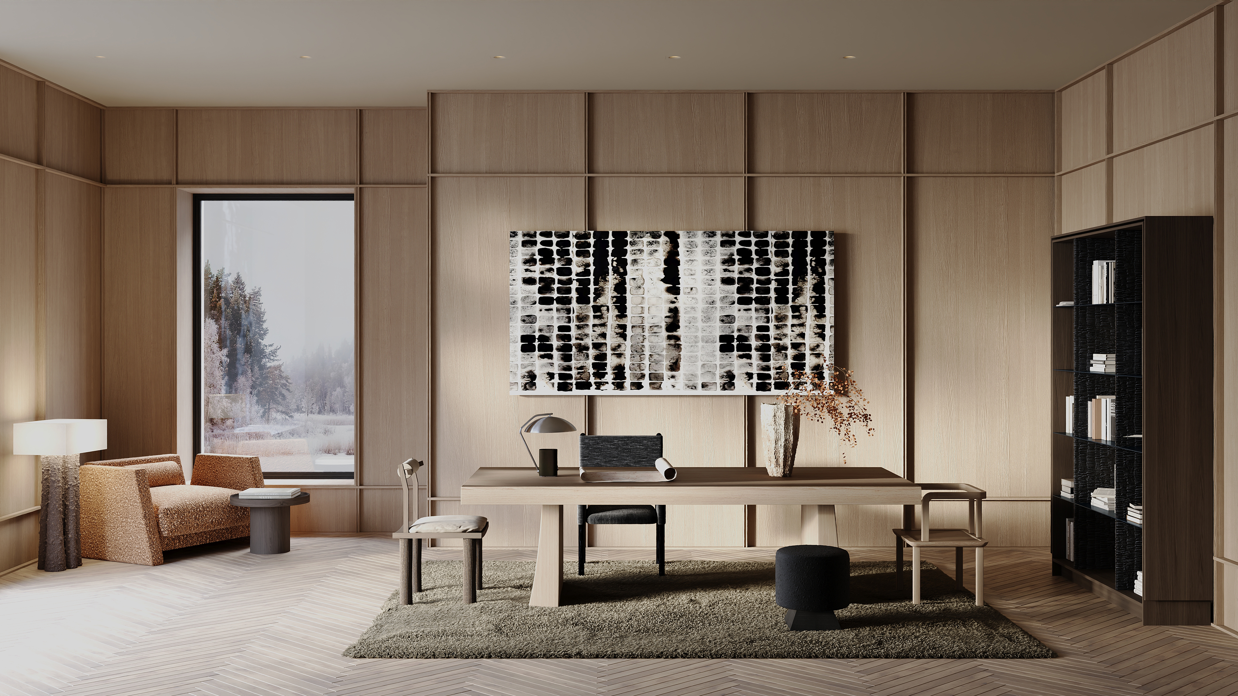Заглянем в кабинет архитектора? Атмосферу домашней мастерской передала Ольга Погорелова, автор одной из наших коллекций. Она как никто другой знает, что вдохновение может прийти совершенно внезапно, и в интерьере должно быть место, позволяющее комфортно работать и улавливать все творческие флюиды. А в преддверии зимы особенно важно еще и ощущение теплоты от пространства.