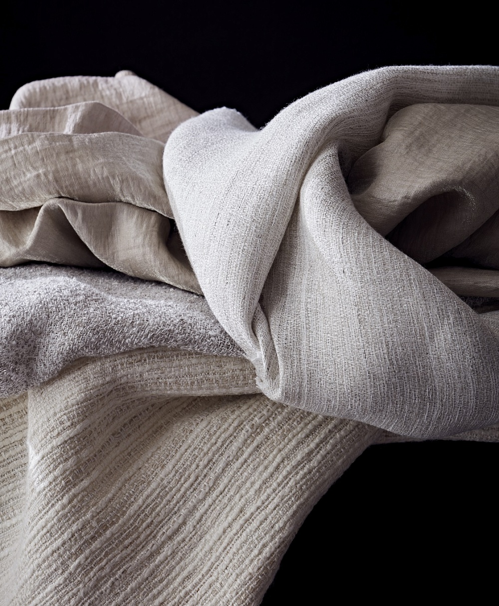 В текстиле царит “безмолвная простота и рациональность, спокойствие и безмятежность”. Нейтральные и естественные тона и натуральные ткани: высококачественная шерсть, кашемир, хлопок, а также переработанные материалы.