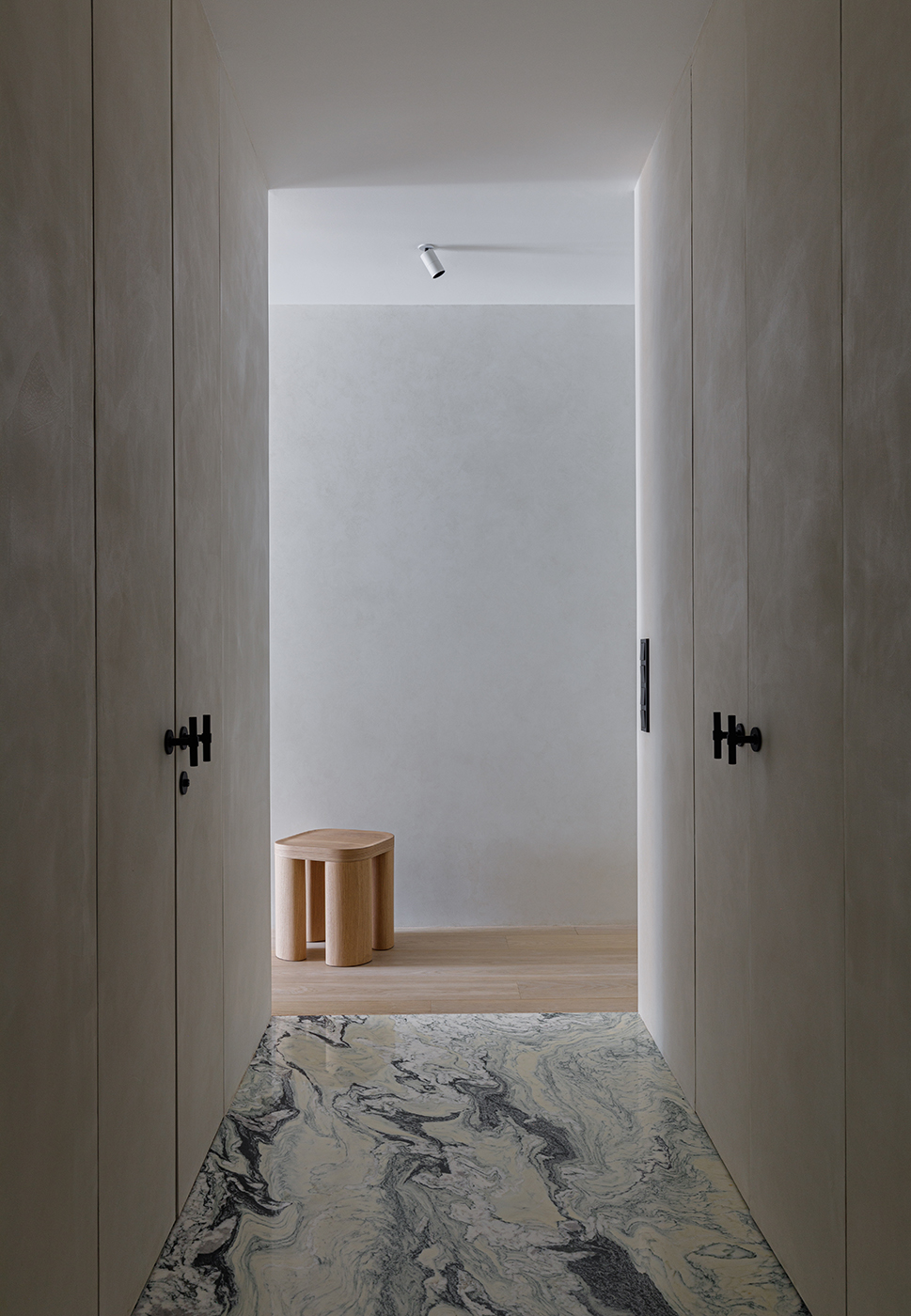 А затем инвестор предложил нам продумать и интерьерное решение, которое бы органично вписалось в архитектуру комплекса и передавало бы дух Замоскворечья. Мы представили себе портрет будущего владельца этих апартаментов - успешного молодого человека, которому необходим оазис спокойствия и комфорта в таком динамичном мегаполисе. И перед нами встала задача сделать каждый метр небольшого пространства максимально функциональным. Как раз благодаря продуманному нашими архитекторами планировочному решению были реализованы все поставленные перед нами запросы. Увидев результат, девелопер предложил спроектировать еще несколько квартир в том же ключе и даже целый подъезд - с изменением общей стилистики лобби и межквартирных холлов!
