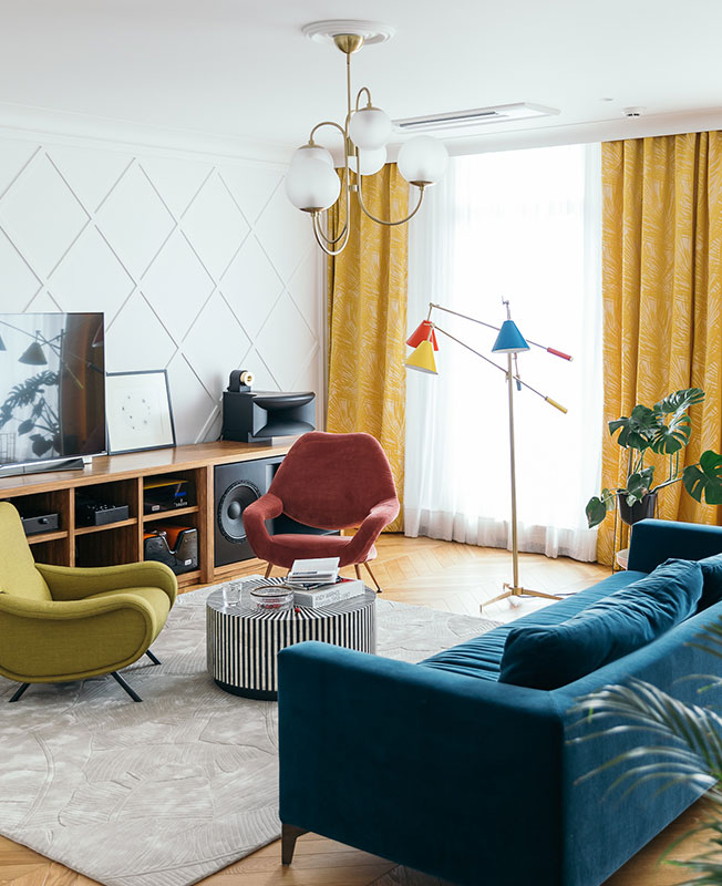Зачем нам нужен этот стиль? Почему он так актуален? Ответов может быть два. Во-первых, потому что любой удачный интерьер всегда опирается на историю дома, на его архитектуру. И если вы обставляете квартиру в сталинке, в доме 50-х годов с его характерными пропорциями, то будет совершенно логичным разыграть карту mid-century modern в таком интерьере. Ну и вторая причина – это поиски русского кода, которым мы сейчас все вместе занимаемся. Понятно, что цари-крестьяне, быт российской аристократии нам может быть мил и приятен, но уже не близок. И современному человеку сложно жить как во дворце, так и в избе. Перенимать традицию можно, если она не так далеко, например, на расстоянии вытянутой руки, то есть в пределах 70 лет. И именно на этой временной границе находится стиль mid-century modern, который мы считываем как свой родной, стиль наших родителей, бабушек и дедушек. А значит, мы можем его принять, нам легко его сочетать с современными предметами, и мы можем выстроить интересный исторически заряженный интерьер.