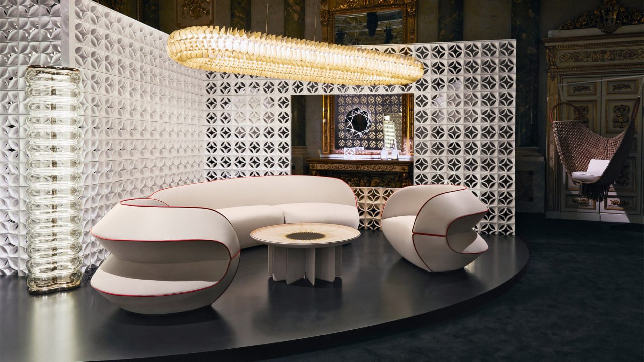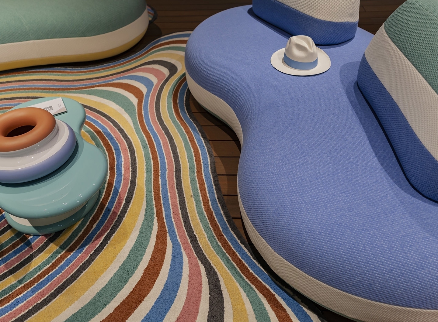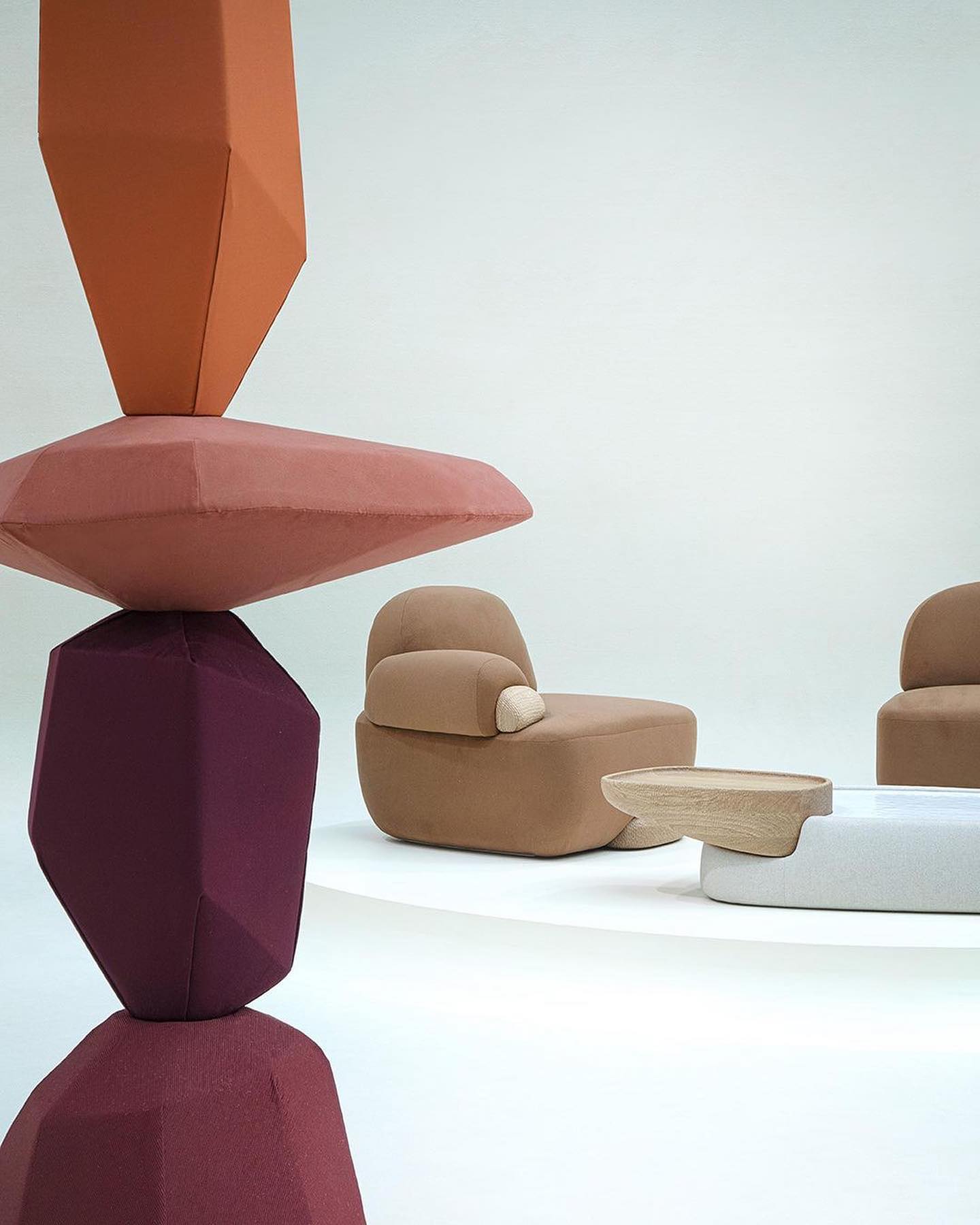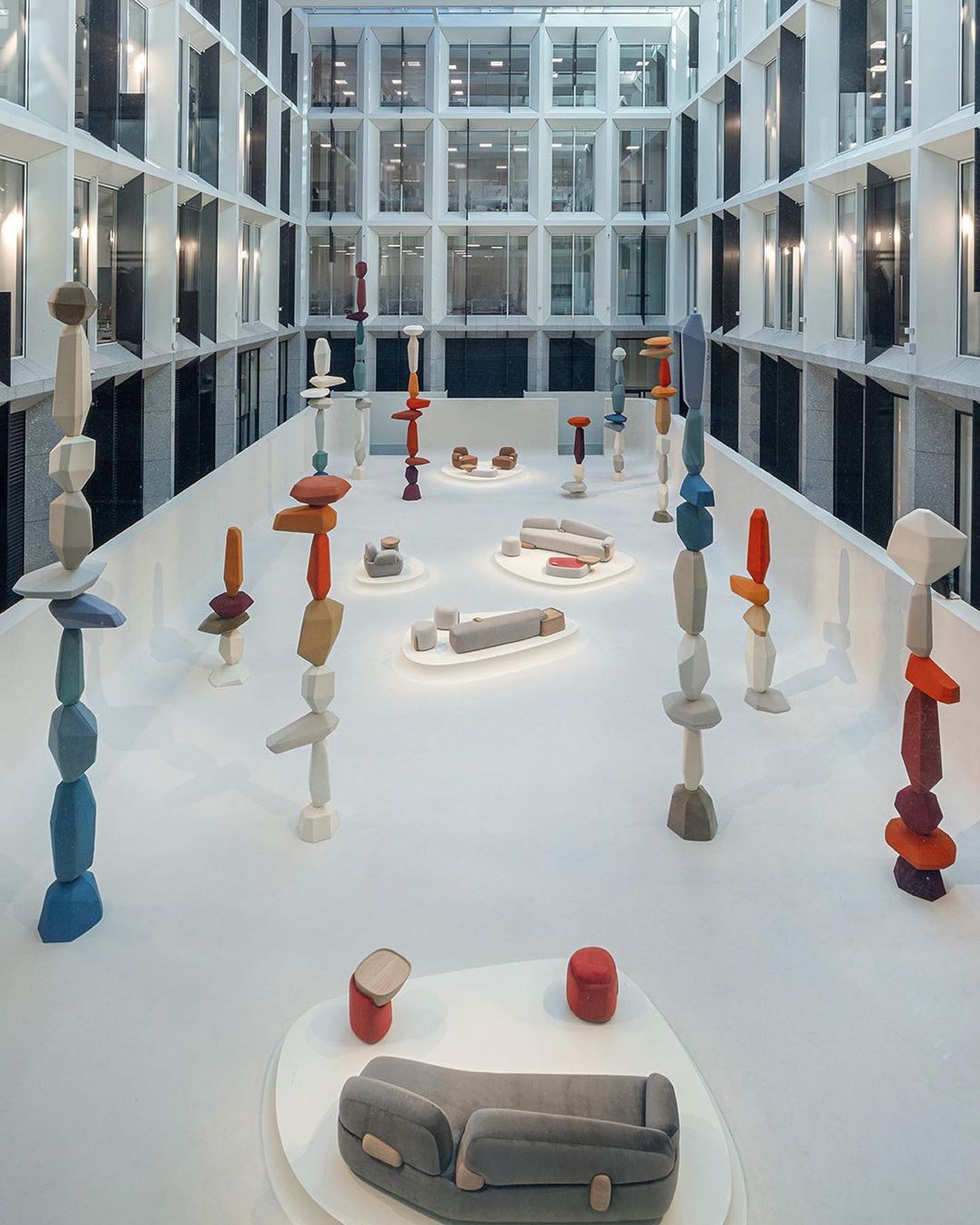 В атриуме флагманского шоу-рума на Монтенаполеоне можно было увидеть инсталляцию Apacheta. Это первый совместный проект интерьерного подразделения бренда с аргентинским художником Кристианом Мохадедом. Он родом из провинции Катамарка, в горах которой обитают викуньи, или дикие южноамериканские верблюды, - именно из их шерсти получают кашемир Loro Piana. “Апачеты” (пирамиды из камней) тоже родом из Анд. Так и сложилась концепция проекта. Мохадед придумал поставить 12 пирамид высотой до 8 метров из разноформатных “камней”, обтянутых вторично переработанными тканями марки. А между пирамидами расположились островки с диванами, банкетками, столиками, стульями, тоже чем-то напоминающими груды природных камней. Материалы: дуб, шерсть натуральных оттенков, керамические вставки.