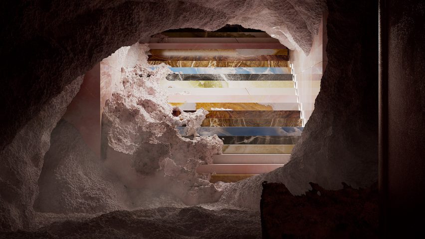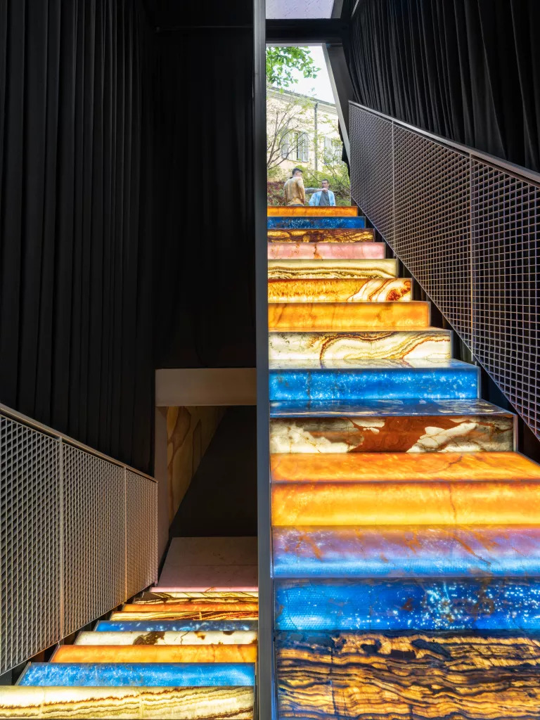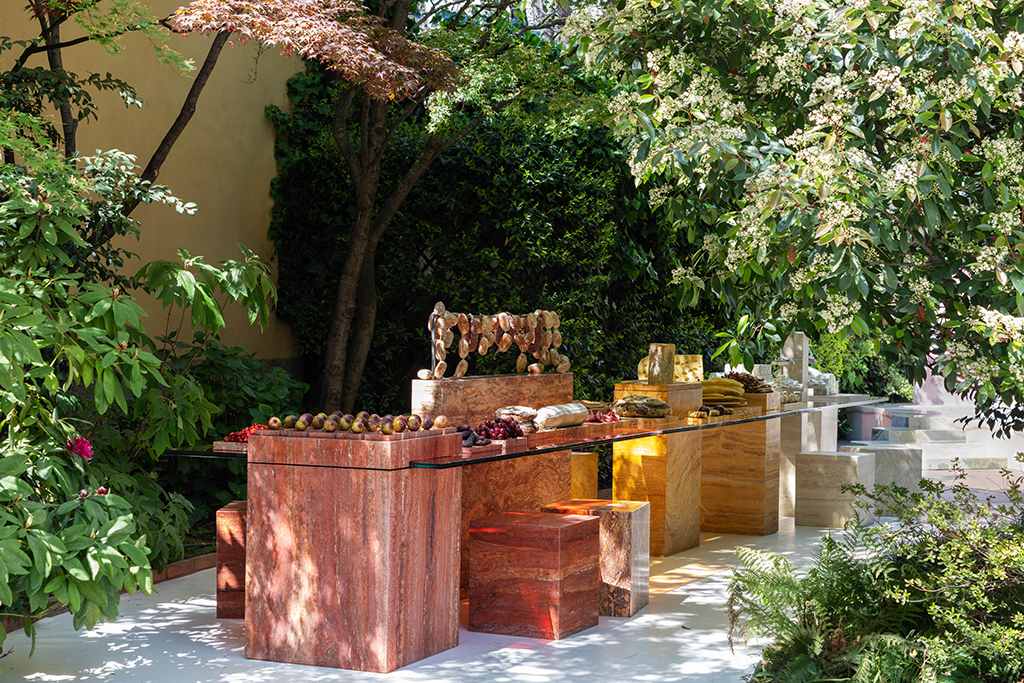 Гранит во всей красе (с разнообразием цветов, рисунков, отделок и функций) был представлен в частной резиденции в районе Брера. За концепт отвечало бюро ОМА (под руководством Рема Колхаса), среди ключевых фигур-участников - Сабин Марселис, иранская художница Бита Файязи, ландшафтная студия Ossidiana из Роттердама и молодой голландский художник Уорд Стротман. Посетители спускались в “подземелье” по ступеням из радужного оникса, проходили через каменные разноцветные “шахты” и оказывались в саду. А там их ждал главный экспонат: разработанный Марселис 7-метровый стол со стеклянной столешницей, цвет которой меняется от бледно-желтого до красного по всей длине, и оттенки четко соответствуют каждой опорной каменной колонне.