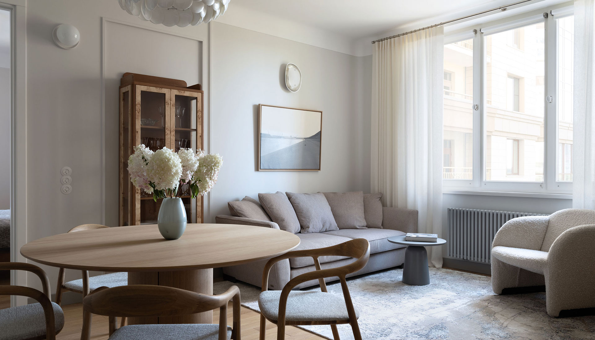 Хотим обратить внимание на то, как грамотно российские дизайнеры работают с белой палитрой. Свет в Москве, тем более в Санкт-Петербурге, абсолютно другой, нежели на южных морях и в Средиземноморье. Здесь неуместны открытые цвета и чистый белый цвет, он будет просто серым. Под нашим северным солнцем лучше всего работает тонкая палитра off-white или палитра припылённых оттенков. Именно такую атмосферу загадочного утреннего света, белых ночей создала, например, дизайнер Наталья Юнг в своем проекте, который она так и назвала «60-я параллель». Напомним, что на этой параллели находятся города Санкт-Петербург, Осло и Хельсинки.